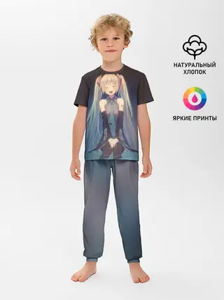 Детская пижама с брюками / Хатсуне сидит прикрыв глаза