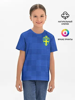 Детская базовая футболка / Швеция гостевая форма ЧМ 2018