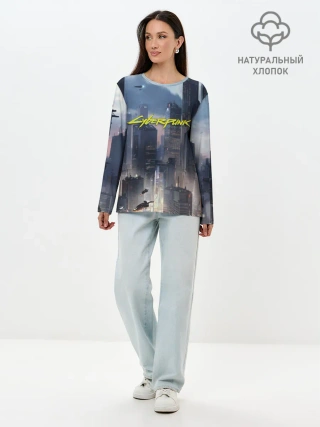 Лонгслив женский. Хлопок / Cyberpunk 2077 city