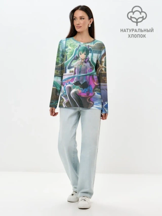Лонгслив женский. Хлопок / Мика Хацуне за фортепиано