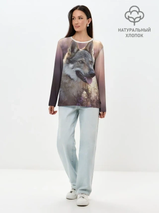 Лонгслив женский. Хлопок / Волк