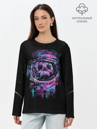 Лонгслив женский. Хлопок / Космический Череп