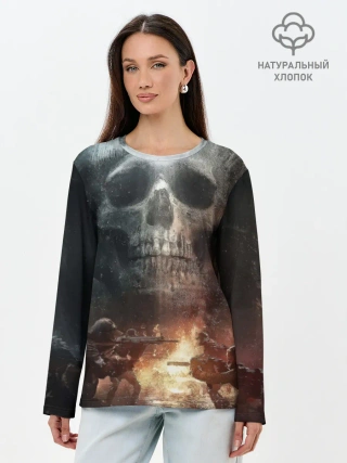 Лонгслив женский. Хлопок / Battlefield Череп