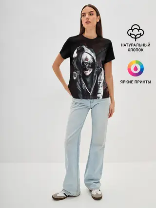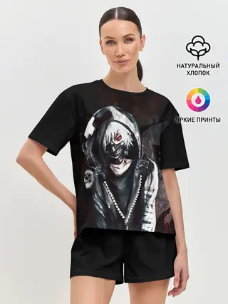 Женская футболка оверсайз / Ken Kaneki в капюшоне