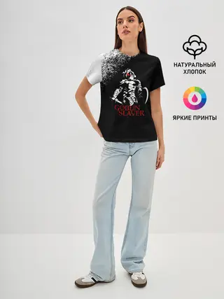 Женская базовая футболка / Убийца Гоблинов черно-белый