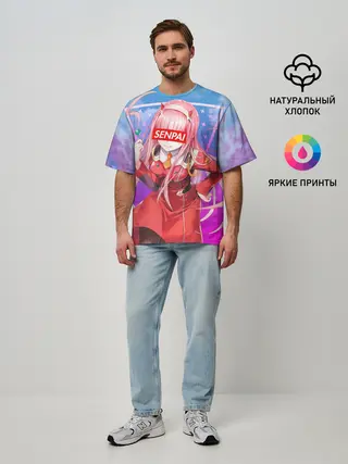 Мужская футболка оверсайз / Anime Senpai Girl pink