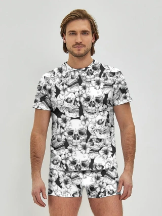 Мужские трусы с футболкой / Черепа в цветах