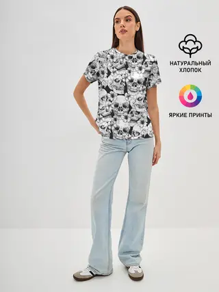 Женская базовая футболка / Черепа в цветах
