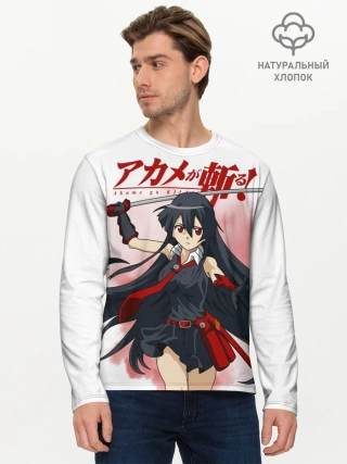 Мужской лонгслив базовый / Акаме атакует на белом фоне