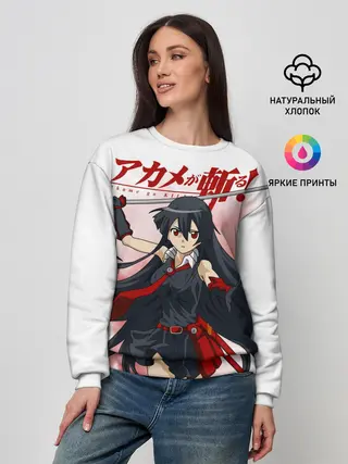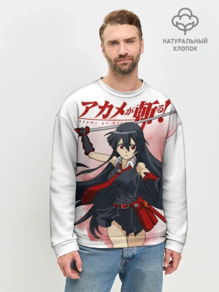 Мужской свитшот базовый / Акаме атакует на белом фоне