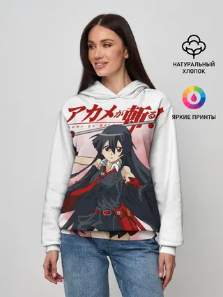 Худи мужской база хлопок / Акаме атакует на белом фоне