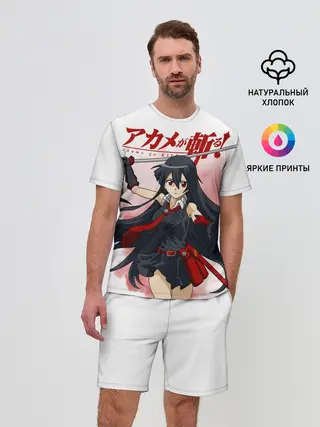 Мужская пижама с брюками / Акаме атакует на белом фоне