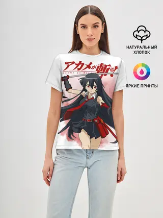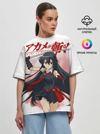 Женская футболка оверсайз / Акаме атакует на белом фоне