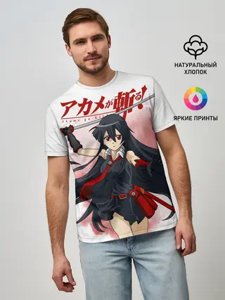 Мужская футболка оверсайз / Акаме атакует на белом фоне