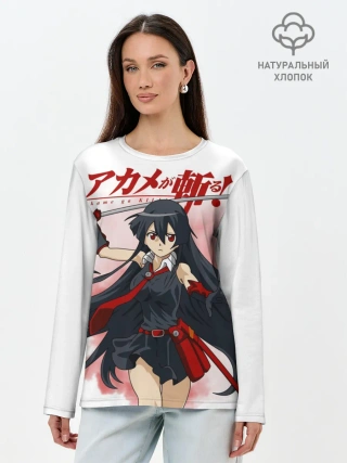 Лонгслив женский. Хлопок / Акаме атакует на белом фоне