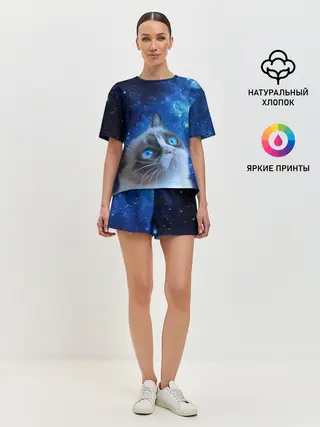 Мужская футболка оверсайз / Сердитый кот в космосе
