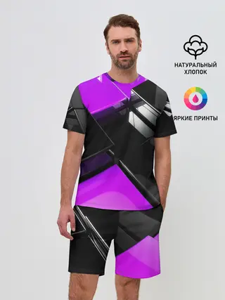 Худи мужской база хлопок / Цветные треугольники_голубой