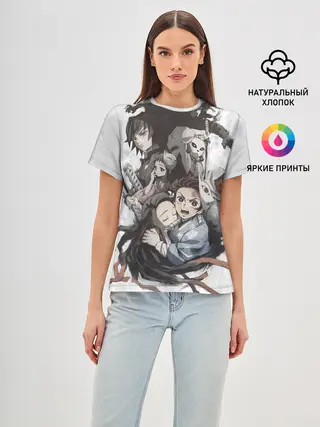 Женская базовая футболка / Kimetsu no Yaiba на сером
