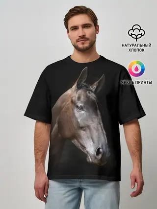 Мужская футболка оверсайз / Лошадь