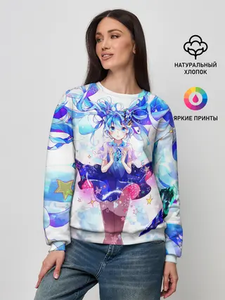 Женский свитшот / Хацуне Мику на красочном фоне