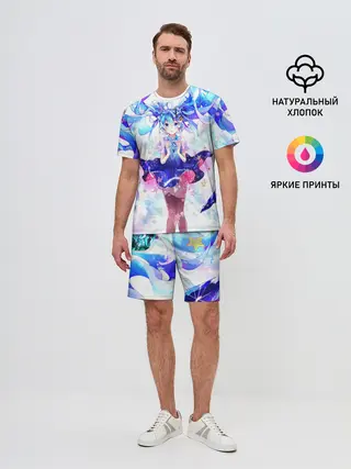 Мужской костюм с шортами / Хацуне Мику на красочном фоне