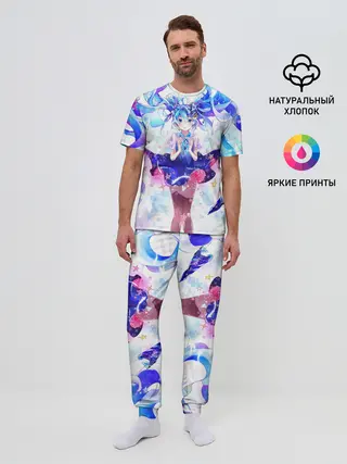 Мужская пижама с брюками / Хацуне Мику на красочном фоне