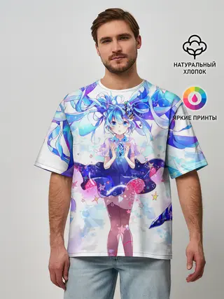 Мужская футболка оверсайз / Хацуне Мику на красочном фоне