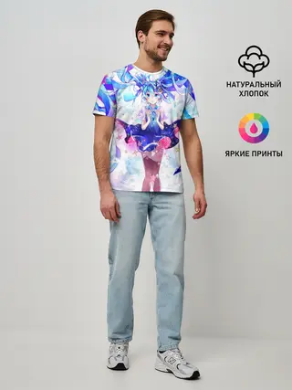 Мужская базовая футболка / Хацуне Мику на красочном фоне