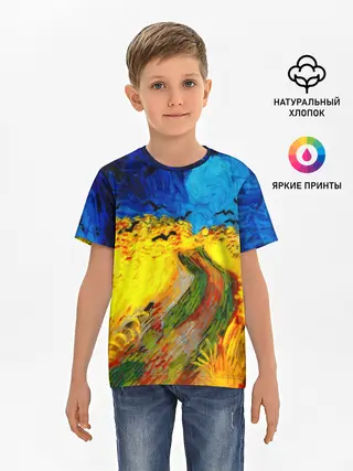 Детская базовая футболка / ВАНГОГ НОЧНОЕ ПОЛЕ