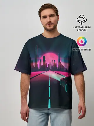 Мужская футболка оверсайз / НЕОНОВЫЙ ГОРОД
