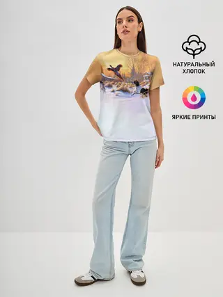 Женская футболка оверсайз / Собака и фазан