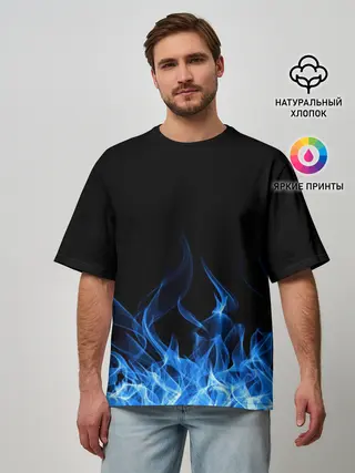 Мужская футболка оверсайз / Синий Огонь