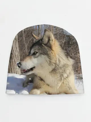 Детская шапка / Волк лежит на снегу