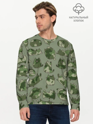 Мужской лонгслив базовый / Камуфляж с котиками