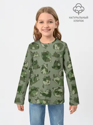 Детский лонгслив / Камуфляж с котиками