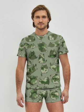Мужские трусы с футболкой / Камуфляж с котиками