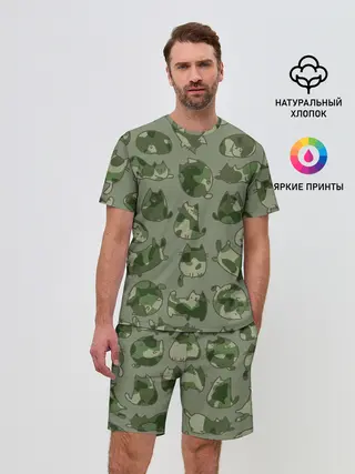 Мужской костюм с шортами / Камуфляж с котиками