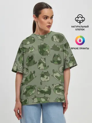 Женская футболка оверсайз / Камуфляж с котиками