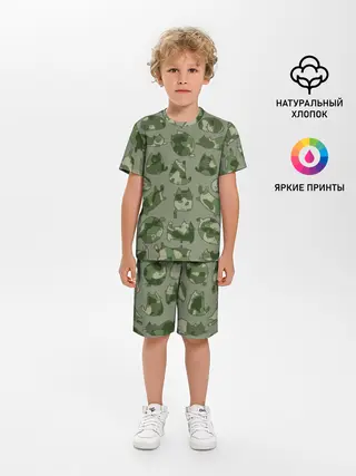 Детская пижама с шортами / Камуфляж с котиками