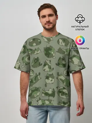Мужская футболка оверсайз / Камуфляж с котиками