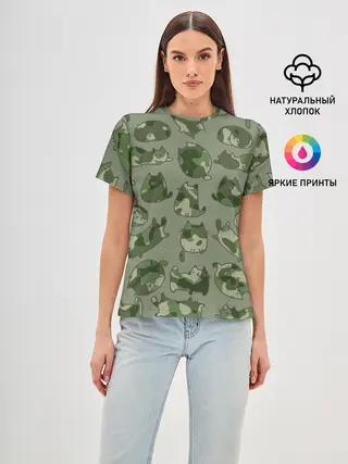 Женская базовая футболка / Камуфляж с котиками