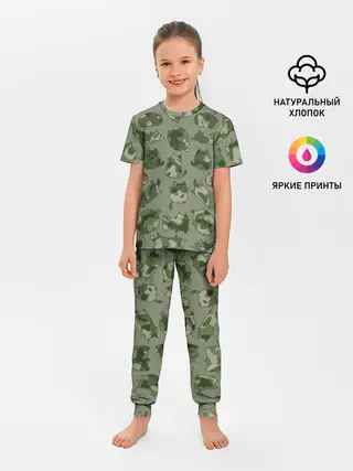 Детская пижама с брюками / Камуфляж с котиками