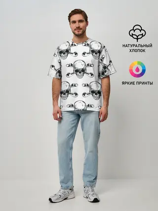 Мужская футболка оверсайз / Череп и кости