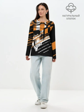 Лонгслив женский. Хлопок / Череп Icon оранжевый