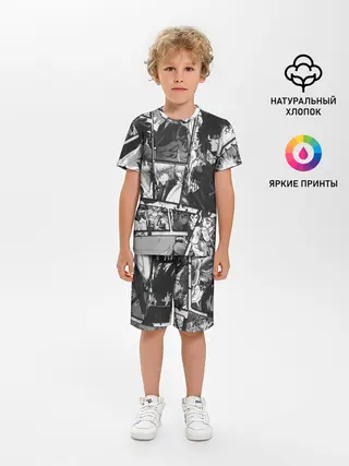 Детская пижама с шортами / EPIC MAIN ANIME CHARACTERS 3D! monochome