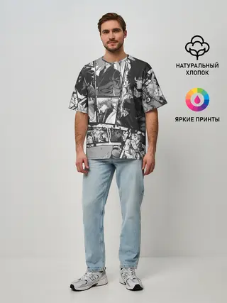 Мужская футболка оверсайз / EPIC MAIN ANIME CHARACTERS 3D! monochome