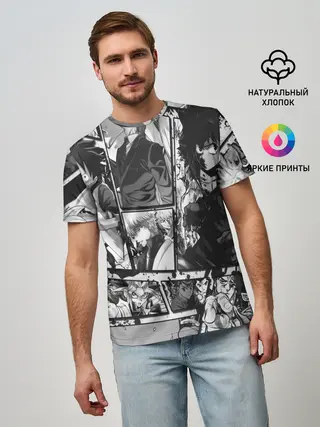 Мужская базовая футболка / EPIC MAIN ANIME CHARACTERS 3D! monochome