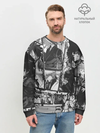 Мужской свитшот базовый / EPIC MAIN ANIME CHARACTERS 3D! monochome
