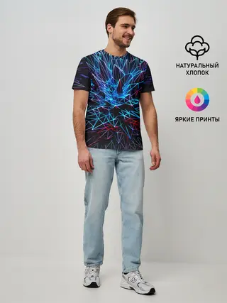 Худи мужской база хлопок / Цветные треугольники_голубой