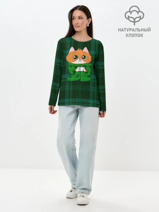 Лонгслив женский. Хлопок / Котёнок в пледе